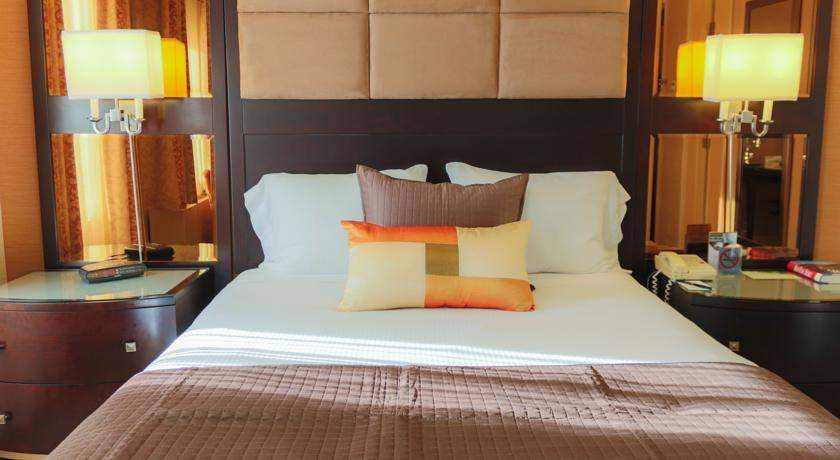 Le 612 stanze sono tutte particolari e diverse, alcune con lavandino di design in zona camera, alcune per famiglie con letti a castello di design, tutte con TV a schermo piatto, asciugacapelli, set di cortesia, armadio con penisola pensile e scrivania pieghevole a scomparsa. Wifi gratuito, sala fitness, ristoranti e bar al 18° piano.